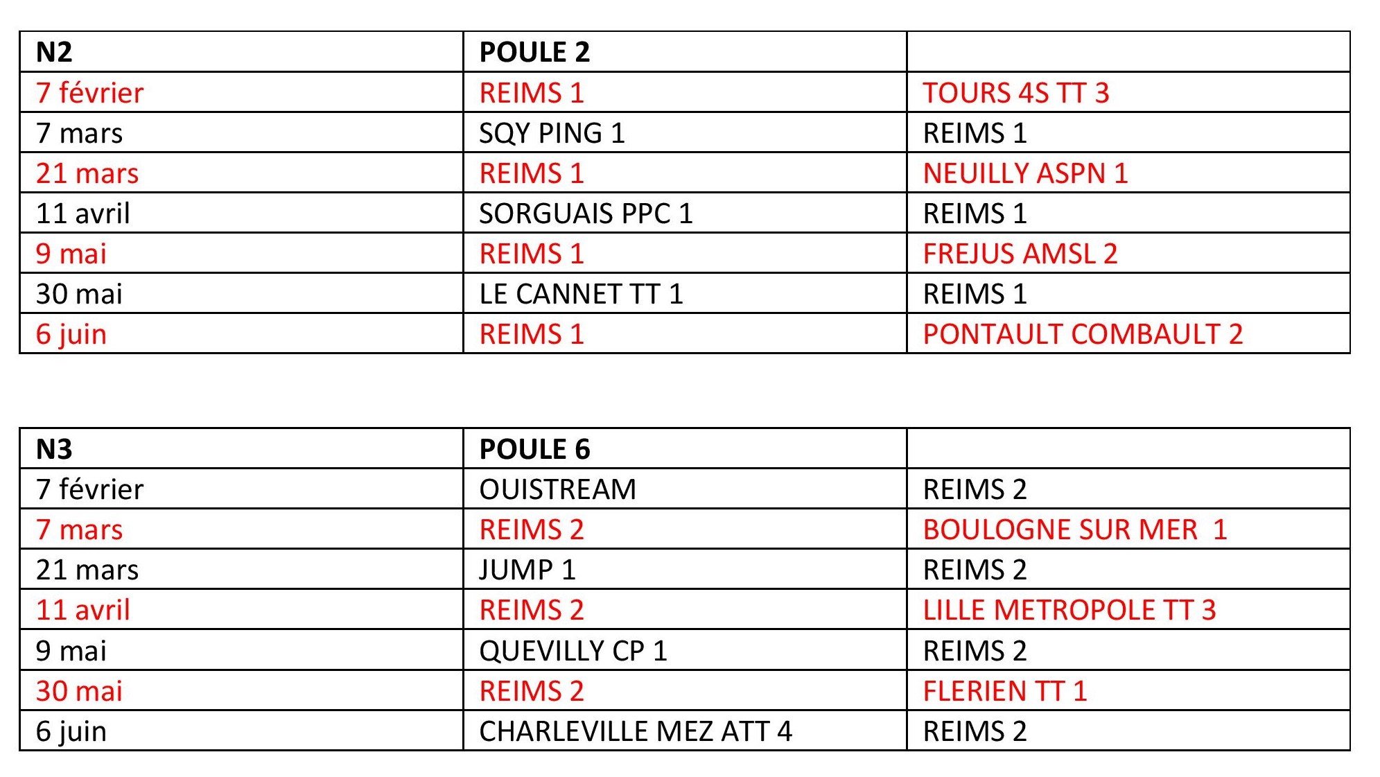 CALENDRIER N2 N3 PHASE 2